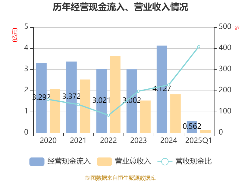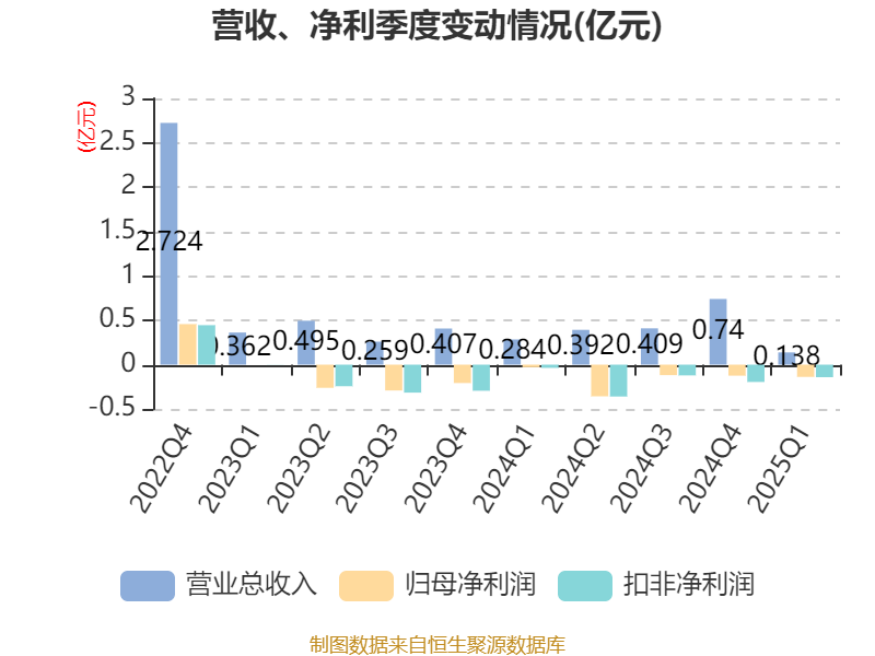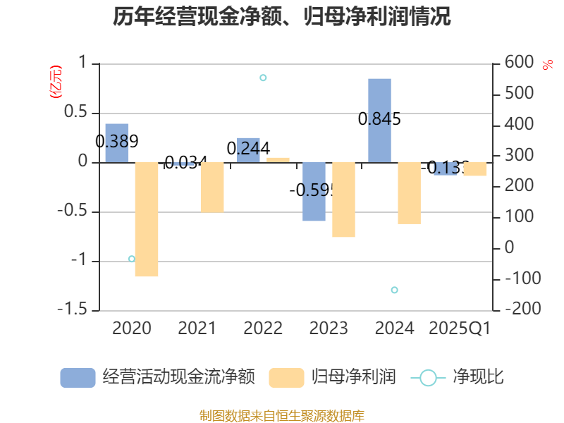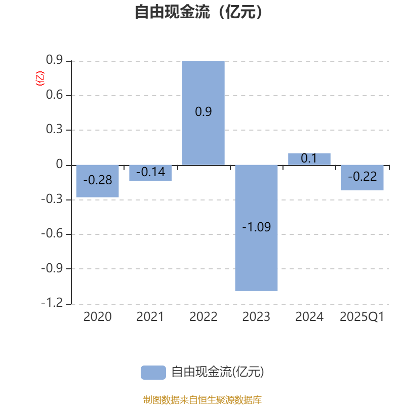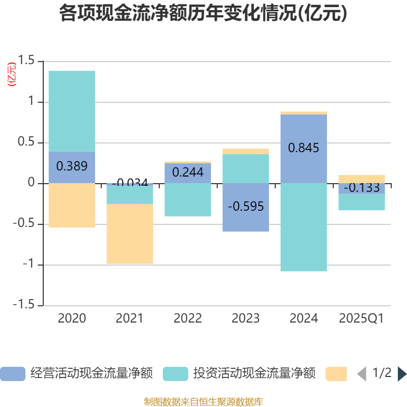 截至2025年一季度末,公司经营活动现金流净额为-1332.63万元,同比减少2399.65万元;筹资活动现金流净额1004.67万元,同比增加1930.38万元;投资活动现金流净额-2001.7万元,上年同期为-1125.83万元。