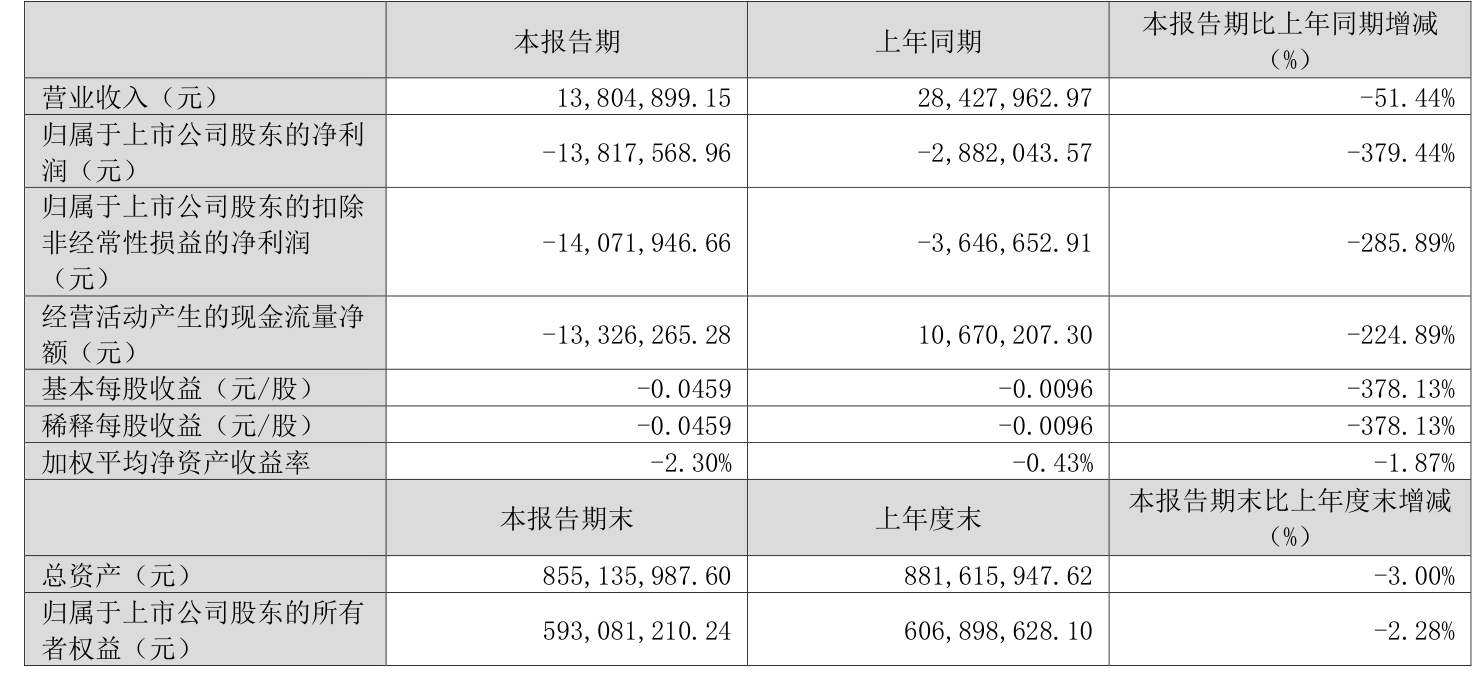 中证智能财讯中威电子(300270)4月29日披露2025年第一季度报告。公司实现营业总收入1380.49万元,同比下降51.44%;归母净利润亏损1381.76万元,上年同期亏损288.2万元;扣非净利润亏损1407.19万元,上年同期亏损364.67万元;经营活动产生的现金流量净额为-1332.63万元,上年同期为1067.02万元;报告期内,中威电子基本每股收益为-0.0459元,加权平均净资产收益率为-2.30%。