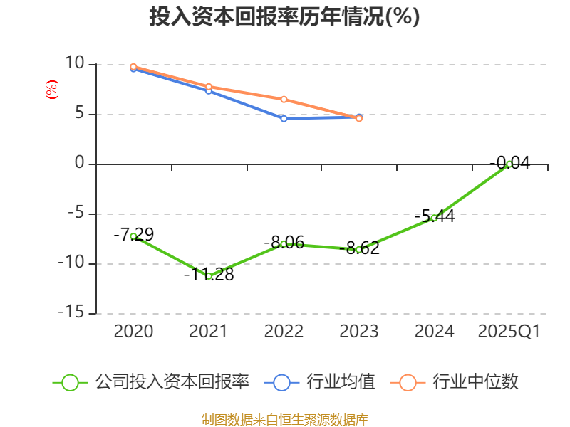 盈利能力方面, 2025年一季度公司加权平均净资产收益率为-1.48%,同比上升0.06个百分点。公司2025年第一季度投入资本回报率为-0.04%,较上年同期上升0.1个百分点。