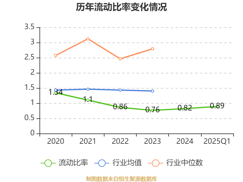 2025年第一季度,公司流动比率为0.89,速动比率为0.73。