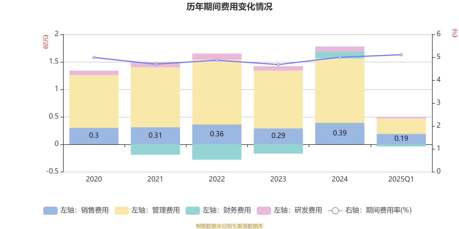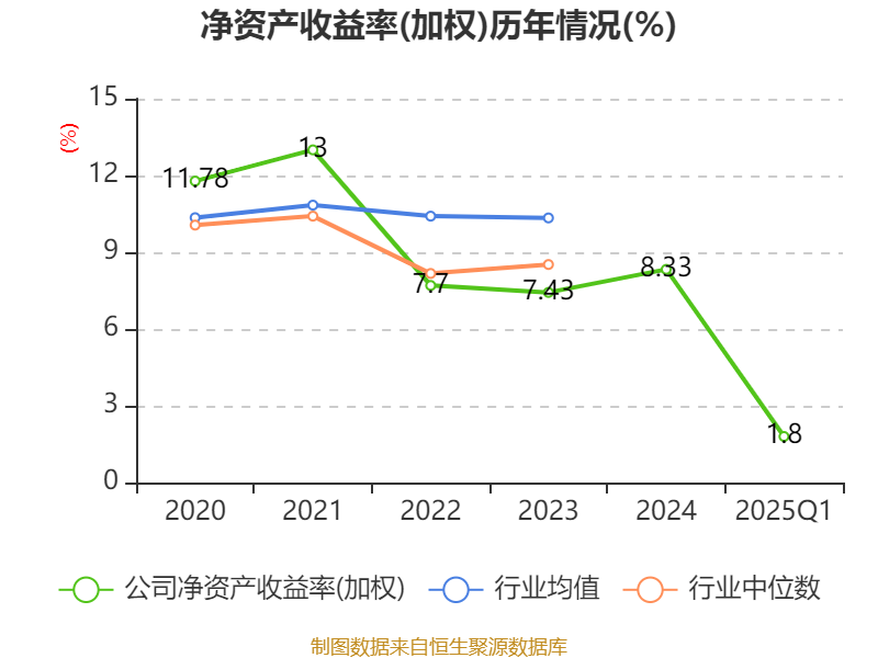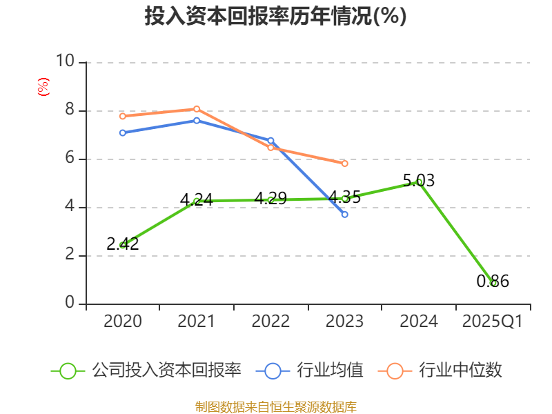 盈利能力方面, 2025年一季度公司加权平均净资产收益率为1.8%,同比下降0.47个百分点。公司2025年第一季度投入资本回报率为0.86%,较上年同期下降0.2个百分点。