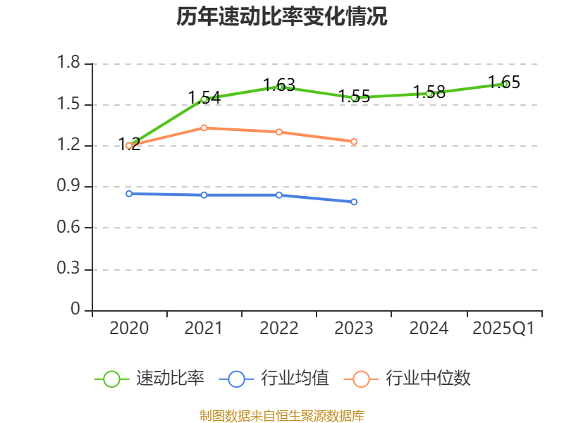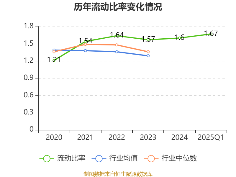 2025年第一季度,公司流动比率为1.67,速动比率为1.65。