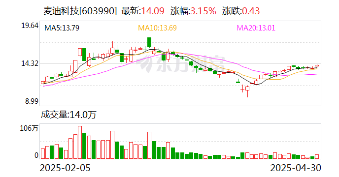4月29日,麦迪科技(603990)公布2025年一季报,公司营业收入为6334万元,同比下降43.1%;归母净利润为2360万元,同比上升138.5%;扣非归母净利润自去年同期亏损7390万元成功扭亏,实现扣非归母净利润253万元;经营现金流净额为-1753万元;EPS(全面摊薄)为0.077元。