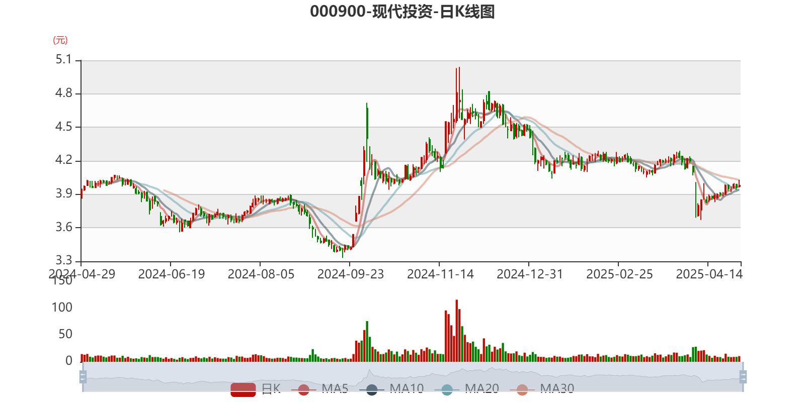 以4月28日收盘价计算,现代投资目前市盈率(TTM)约为18.36倍,市净率(LF)约0.48倍,市销率(TTM)约0.75倍。