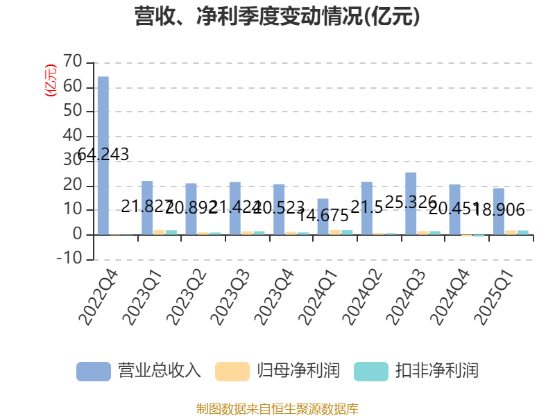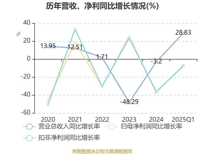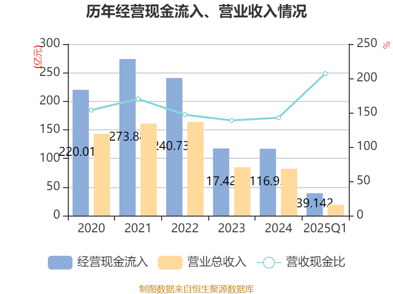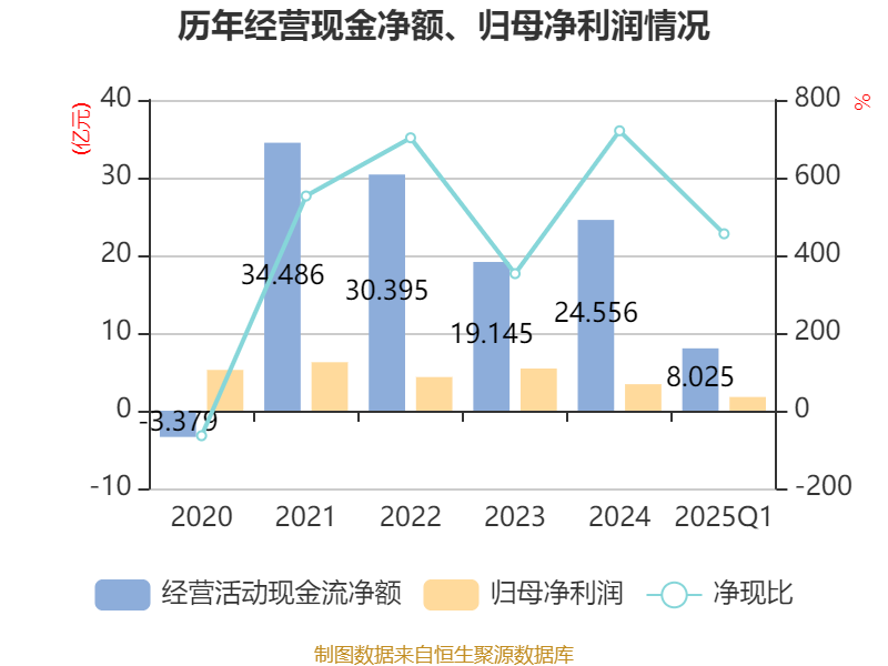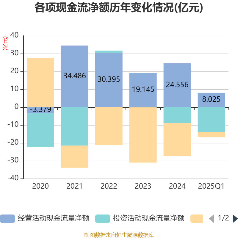 截至2025年一季度末,公司经营活动现金流净额为8.02亿元,同比增长8.59%;筹资活动现金流净额-2.92亿元,同比减少2.47亿元;投资活动现金流净额-13.96亿元,上年同期为-10.5亿元。