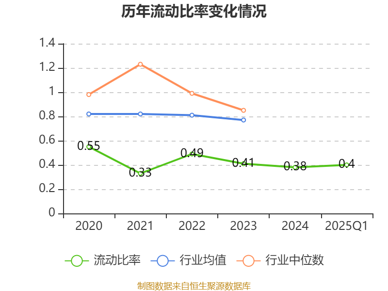 2025年第一季度,公司流动比率为0.4,速动比率为0.37。