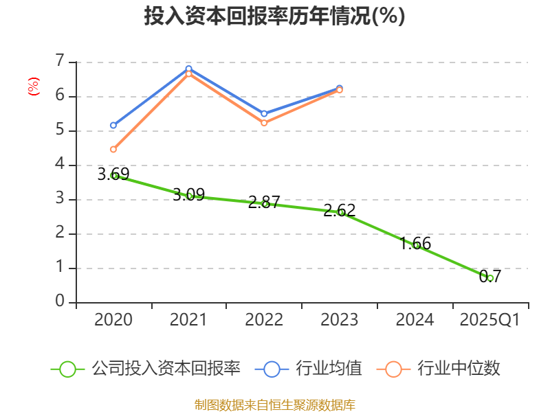 盈利能力方面, 2025年一季度公司加权平均净资产收益率为1.59%,同比下降0.15个百分点。公司2025年第一季度投入资本回报率为0.7%,较上年同期下降0.08个百分点。