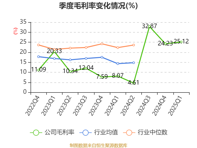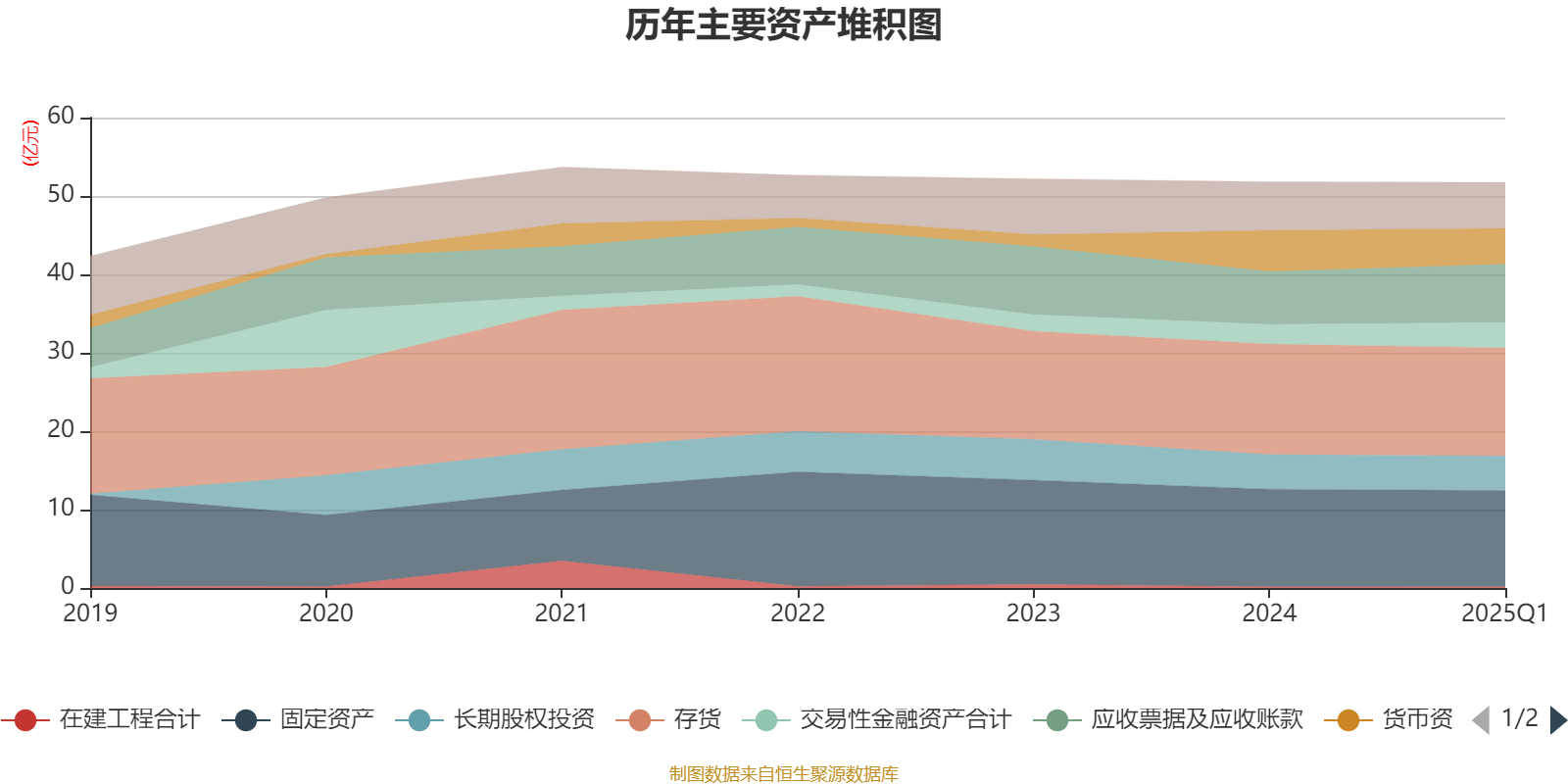 资产重大变化方面,截至2025年一季度末,公司应收票据及应收账款较上年末增加10.64%,占公司总资产比重上升1.4个百分点;交易性金融资产合计较上年末增加28.67%,占公司总资产比重上升1.4个百分点;货币资金较上年末减少13.47%,占公司总资产比重下降1.36个百分点;存货较上年末减少2.22%,占公司总资产比重下降0.57个百分点。