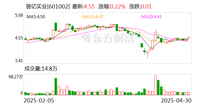 中证智能财讯晋亿实业(601002)4月30日披露2025年第一季度报告。公司实现营业总收入5.76亿元,同比增长35.90%;归母净利润5755.73万元,同比扭亏;扣非净利润5720.1万元,同比扭亏;经营活动产生的现金流量净额为673.51万元,同比下降94.87%;报告期内,晋亿实业基本每股收益为0.06元,加权平均净资产收益率为1.37%。