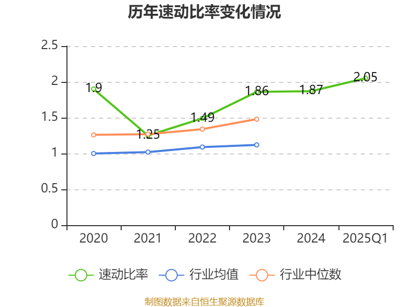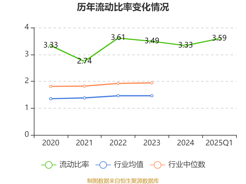 2025年第一季度,公司流动比率为3.59,速动比率为2.05。