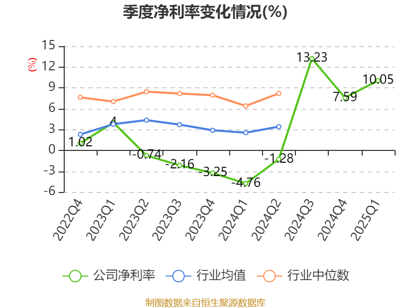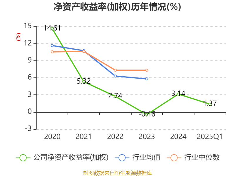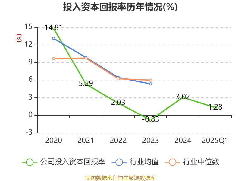 盈利能力方面, 2025年一季度公司加权平均净资产收益率为1.37%,同比上升1.87个百分点。公司2025年第一季度投入资本回报率为1.28%,较上年同期上升1.88个百分点。