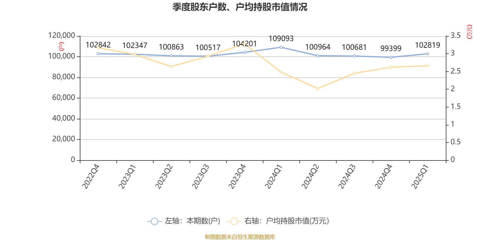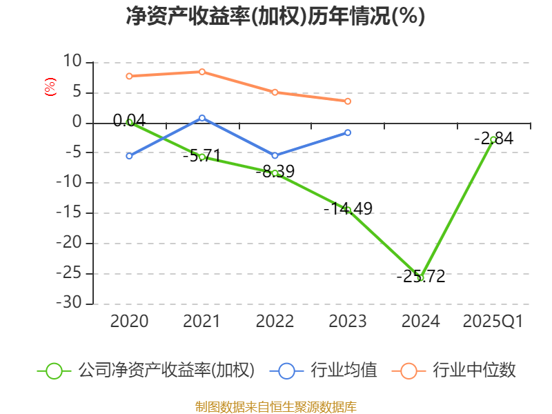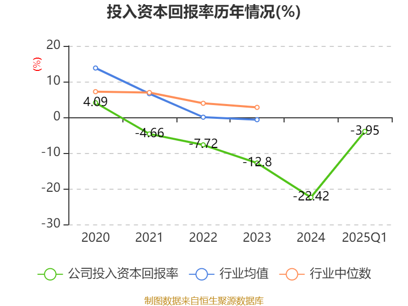 盈利能力方面, 2025年一季度公司加权平均净资产收益率为-2.84%,同比下降2.22个百分点。公司2025年第一季度投入资本回报率为-3.95%,较上年同期下降3.32个百分点。
