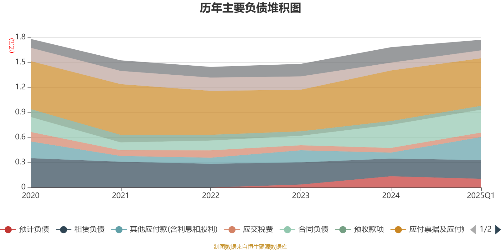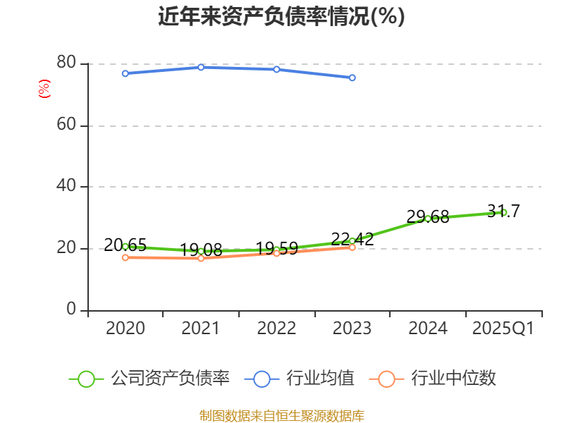 负债重大变化方面,截至2025年一季度末,公司其他应付款(含利息和股利)较上年末增加287.3%,占公司总资产比重上升3.7个百分点;其他流动负债较上年末减少58.15%,占公司总资产比重下降0.69个百分点;预计负债较上年末减少22.96%,占公司总资产比重下降0.52个百分点;应付票据及应付账款较上年末减少5.9%,占公司总资产比重下降0.48个百分点。
