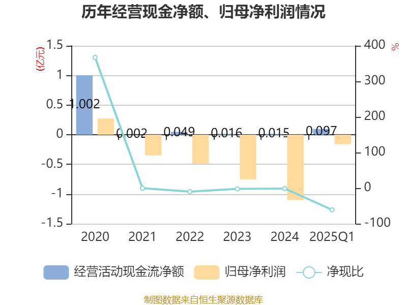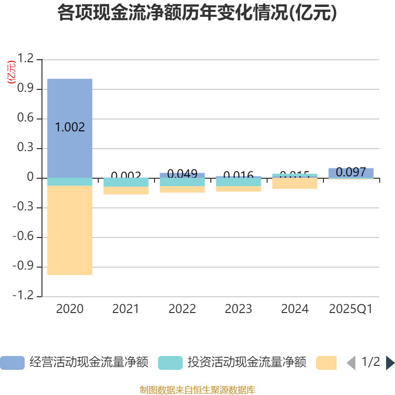 截至2025年一季度末,公司经营活动现金流净额为972.68万元,同比增长79.7%;筹资活动现金流净额-71.93万元,同比增加512.65万元;投资活动现金流净额-97.62万元,上年同期为-210.32万元。