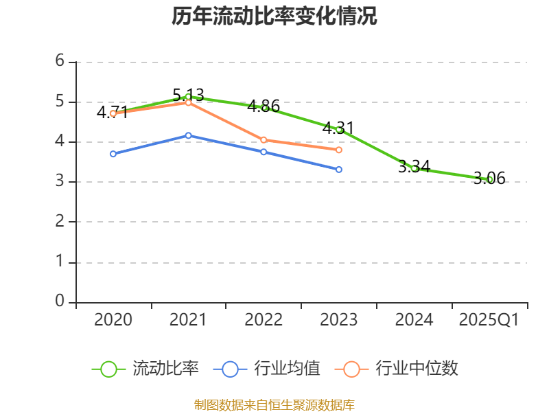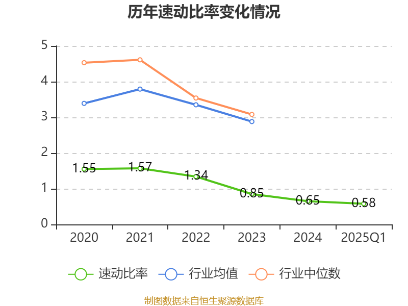 2025年第一季度,公司流动比率为3.06,速动比率为0.58。