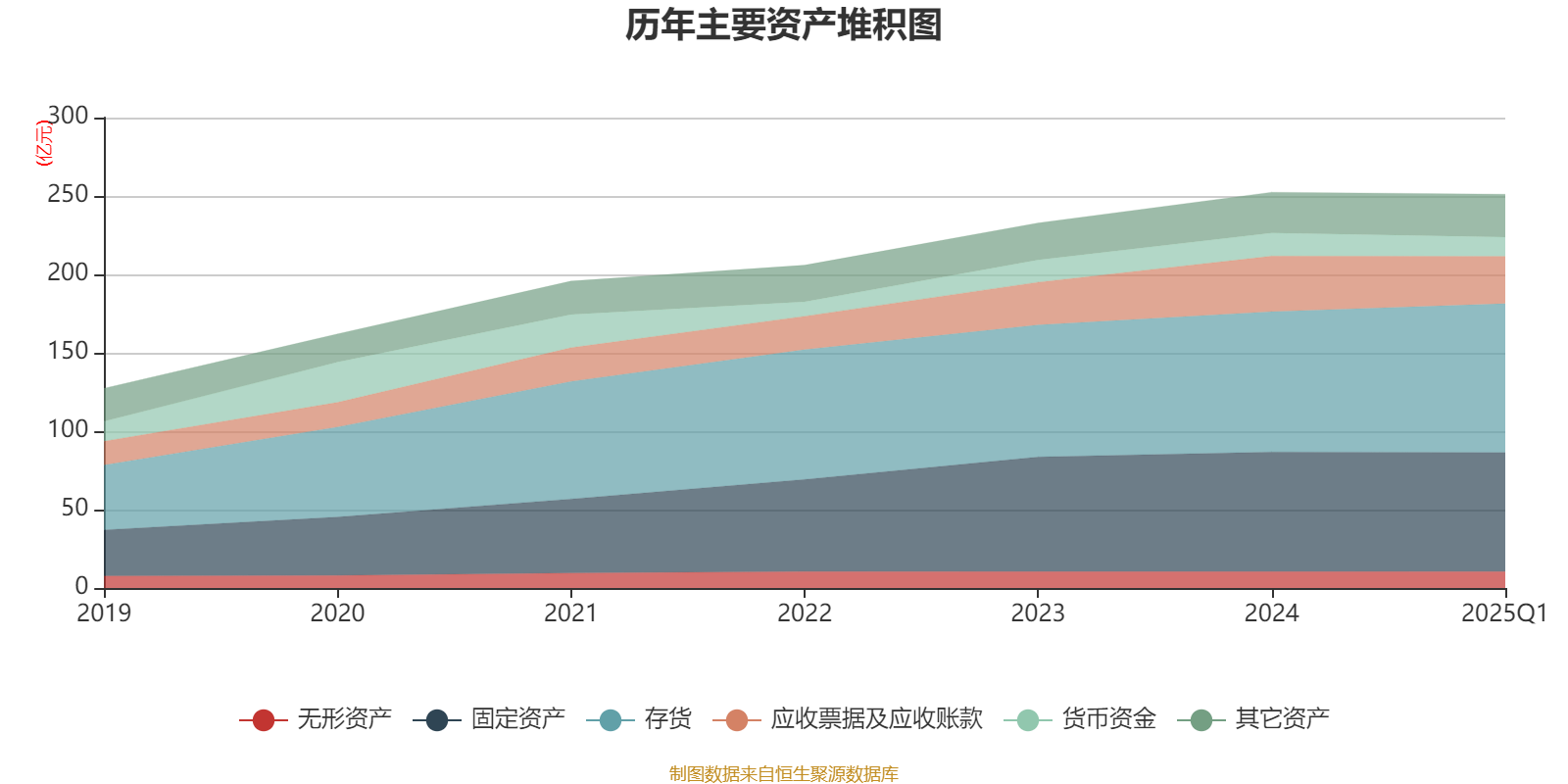 资产重大变化方面,截至2025年一季度末,公司存货较上年末增加5.94%,占公司总资产比重上升2.3个百分点;应收票据及应收账款较上年末减少14.7%,占公司总资产比重下降2个百分点;货币资金较上年末减少16.57%,占公司总资产比重下降0.94个百分点;预付款项较上年末增加11.98%,占公司总资产比重上升0.34个百分点。