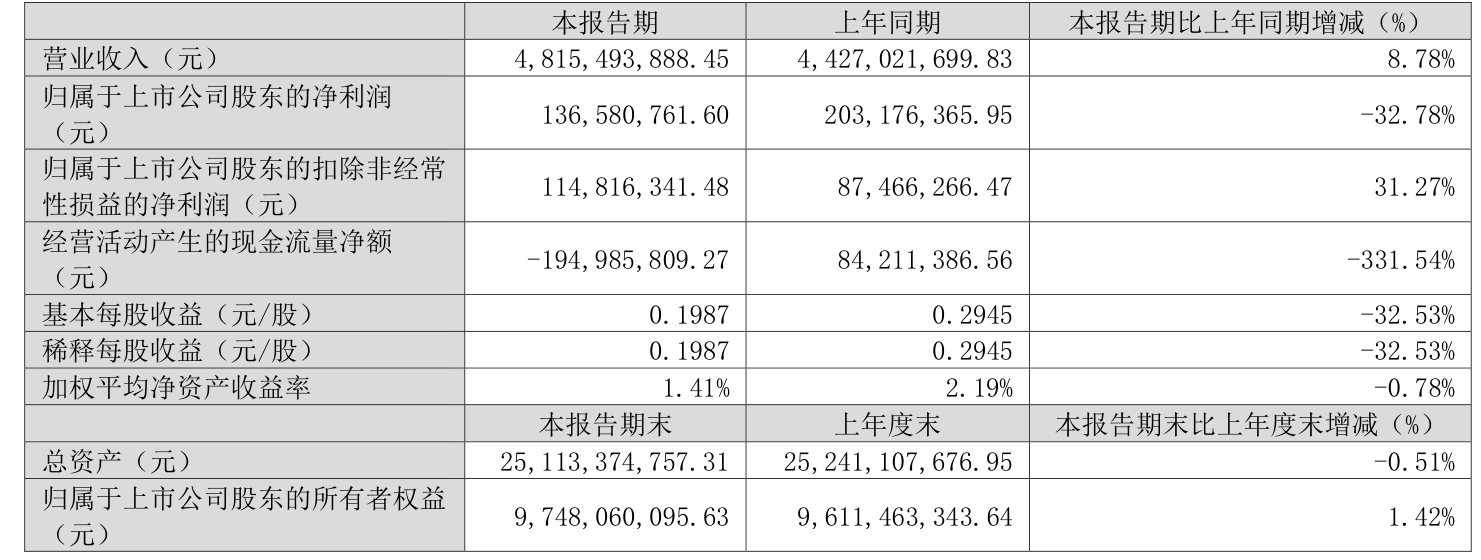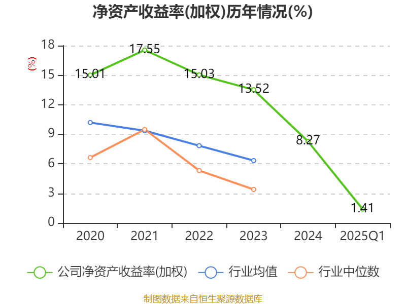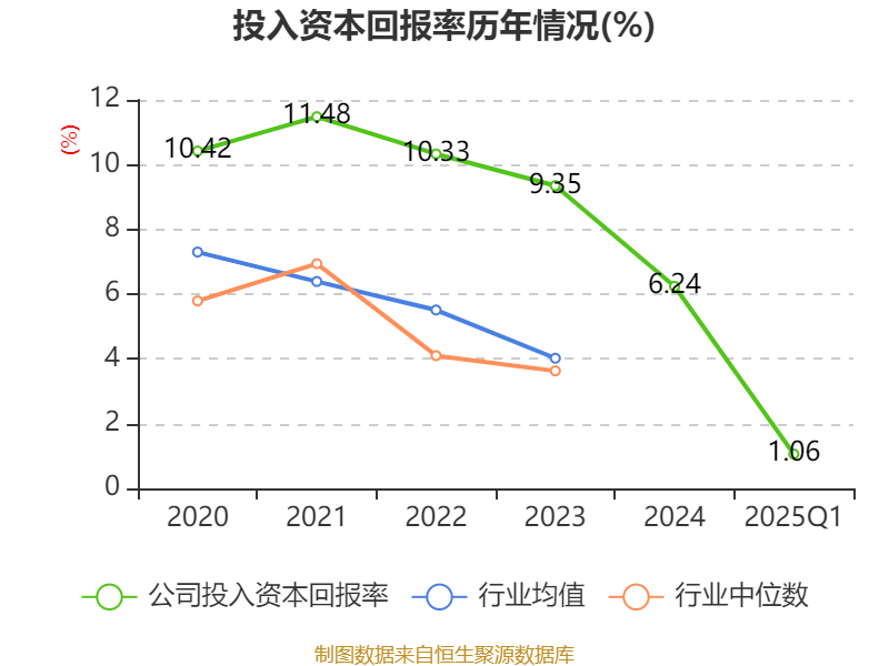 盈利能力方面, 2025年一季度公司加权平均净资产收益率为1.41%,同比下降0.78个百分点。公司2025年第一季度投入资本回报率为1.06%,较上年同期下降0.54个百分点。