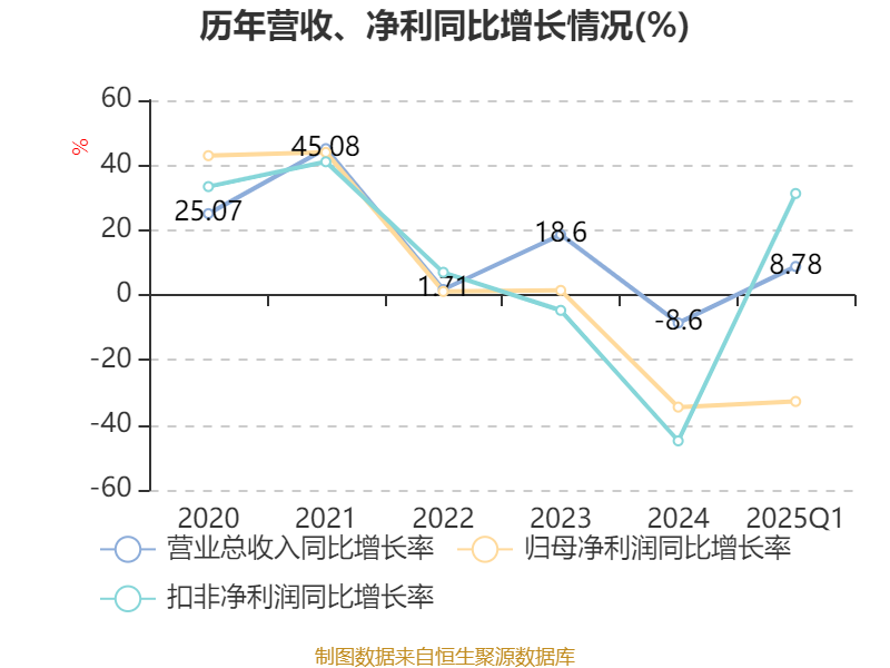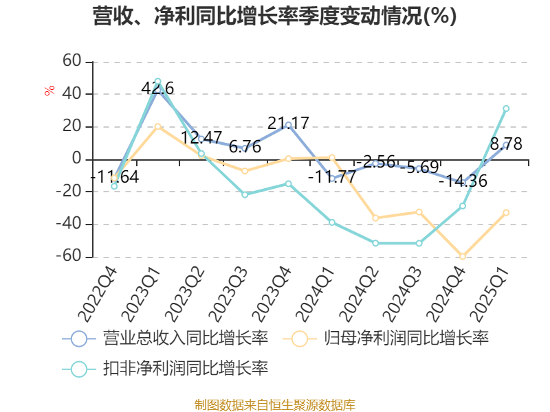 负债重大变化方面,截至2025年一季度末,公司应付票据及应付账款较上年末减少17.63%,占公司总资产比重下降3.02个百分点;短期借款较上年末增加16.8%,占公司总资产比重上升1.4个百分点;一年内到期的非流动负债较上年末增加11.47%,占公司总资产比重上升0.6个百分点;合同负债较上年末增加10.25%,占公司总资产比重上升0.37个百分点。