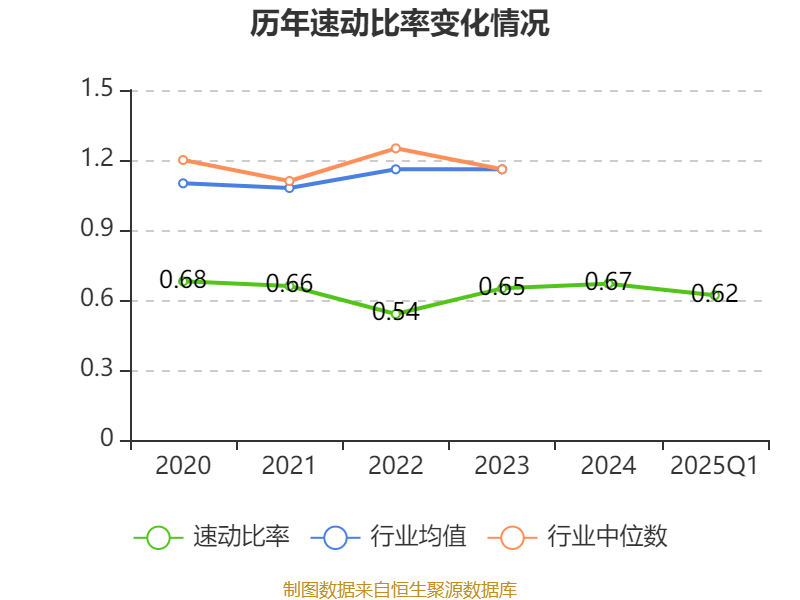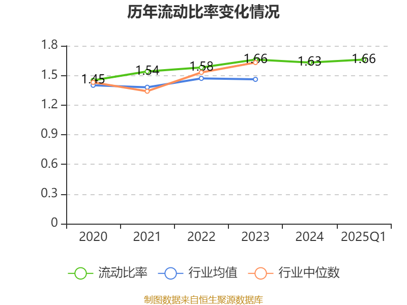 2025年第一季度,公司流动比率为1.66,速动比率为0.62。