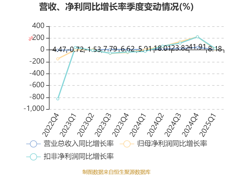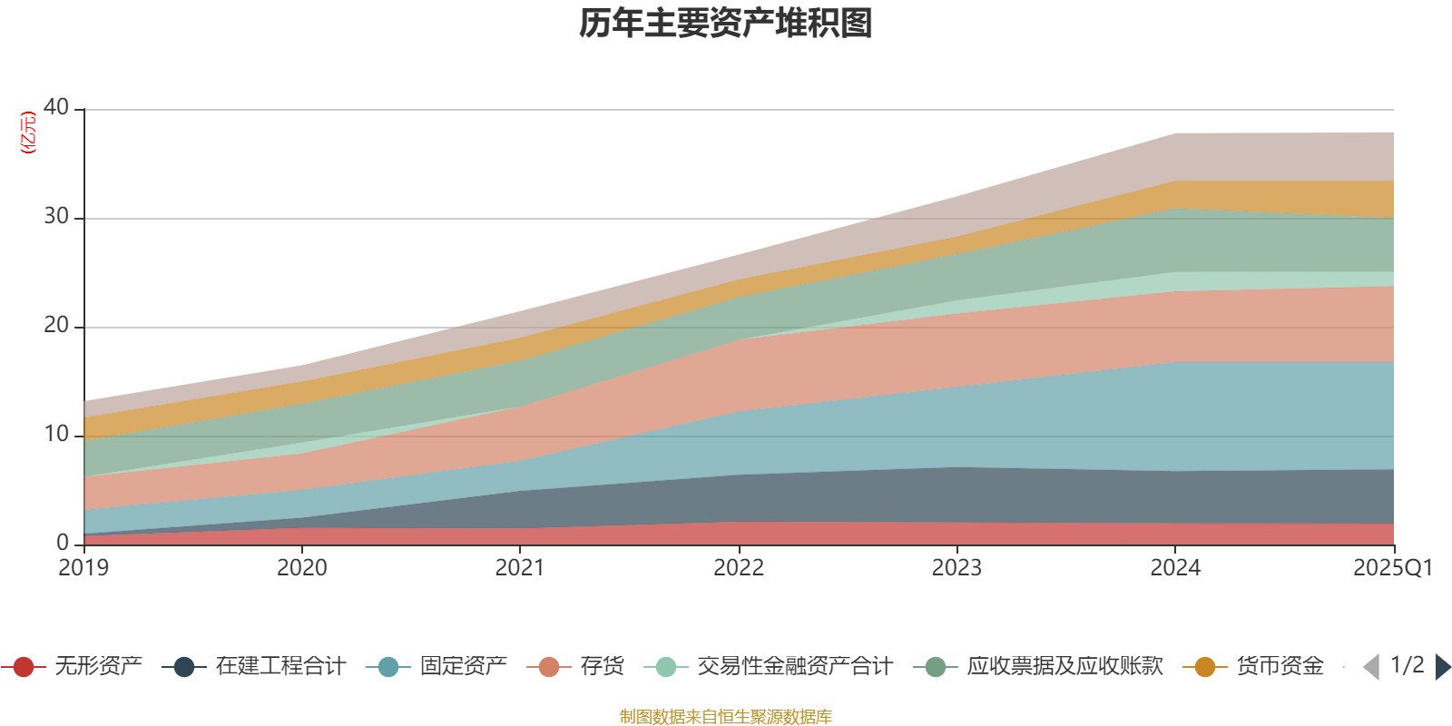 资产重大变化方面,截至2025年一季度末,公司应收票据及应收账款较上年末减少15.31%,占公司总资产比重下降2.39个百分点;货币资金较上年末增加35.08%,占公司总资产比重上升2.33个百分点;交易性金融资产合计较上年末减少26.13%,占公司总资产比重下降1.24个百分点;存货较上年末增加7.42%,占公司总资产比重上升1.24个百分点。