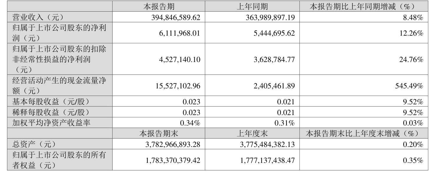 中证智能财讯沃特股份(002886)4月30日披露2025年第一季度报告。公司实现营业总收入3.95亿元,同比增长8.48%;归母净利润611.2万元,同比增长12.26%;扣非净利润452.71万元,同比增长24.76%;经营活动产生的现金流量净额为1552.71万元,同比增长545.49%;报告期内,沃特股份基本每股收益为0.023元,加权平均净资产收益率为0.34%。
