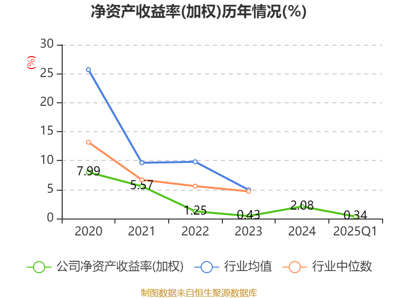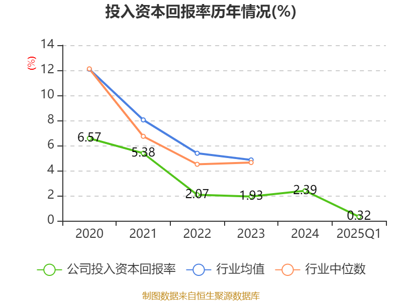 盈利能力方面, 2025年一季度公司加权平均净资产收益率为0.34%,同比上升0.03个百分点。公司2025年第一季度投入资本回报率为0.32%,较上年同期下降0.21个百分点。