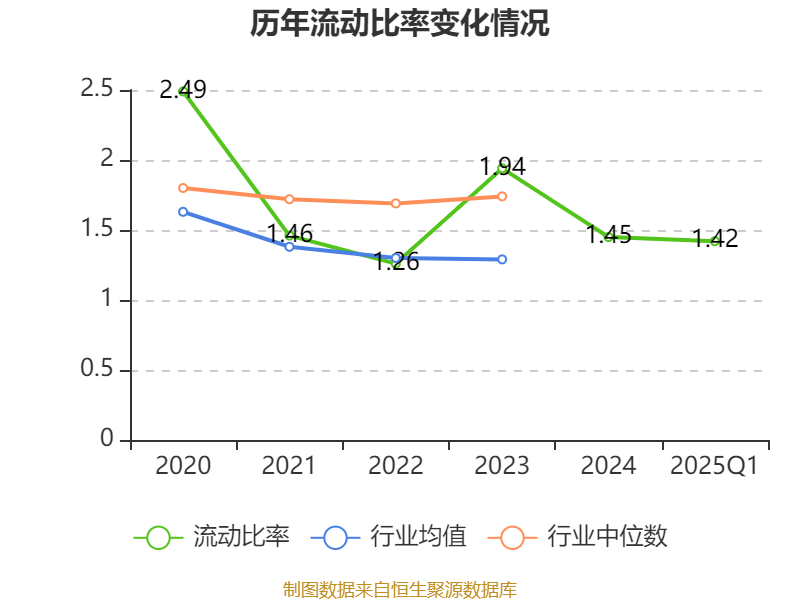 2025年第一季度,公司流动比率为1.42,速动比率为0.9。