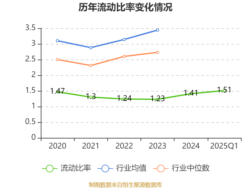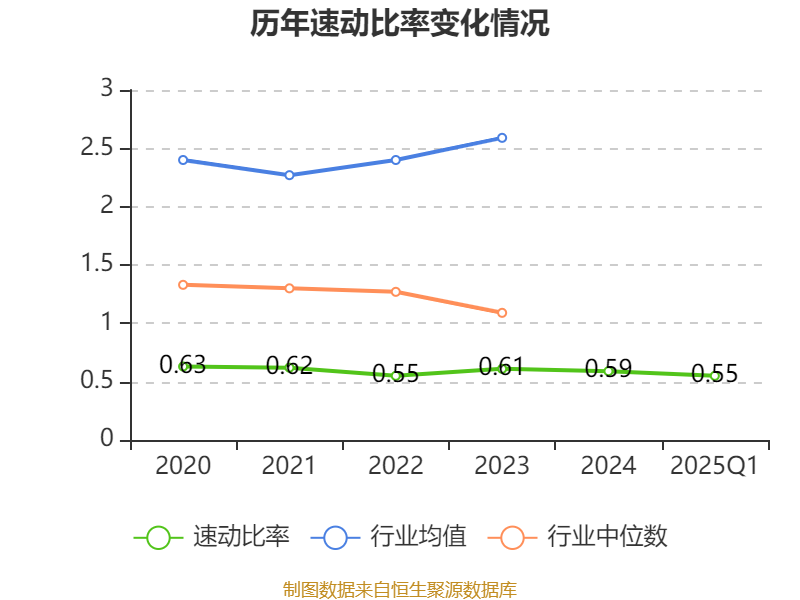 2025年第一季度,公司流动比率为1.51,速动比率为0.55。