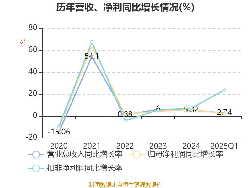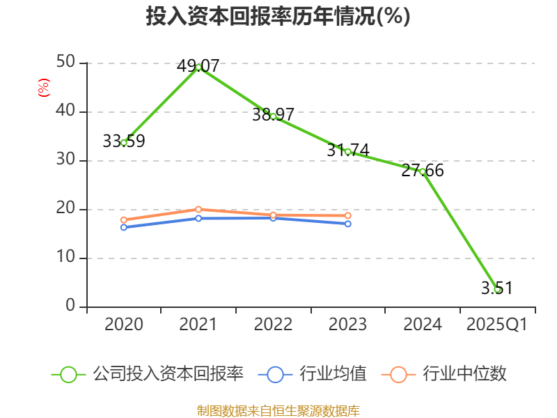 盈利能力方面, 2025年一季度公司加权平均净资产收益率为3.61%,同比下降0.54个百分点。公司2025年第一季度投入资本回报率为3.51%,较上年同期下降0.55个百分点。