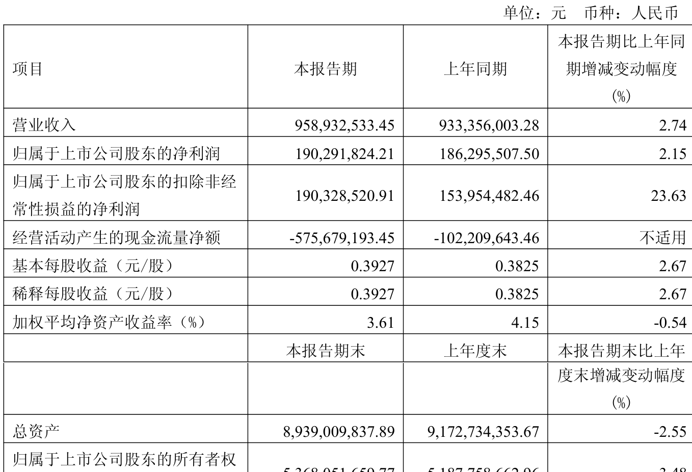 中证智能财讯水井坊(600779)4月30日披露2025年第一季度报告。公司实现营业总收入9.59亿元,同比增长2.74%;归母净利润1.9亿元,同比增长2.15%;扣非净利润1.9亿元,同比增长23.63%;经营活动产生的现金流量净额为-5.76亿元,上年同期为-1.02亿元;报告期内,水井坊基本每股收益为0.3927元,加权平均净资产收益率为3.61%。