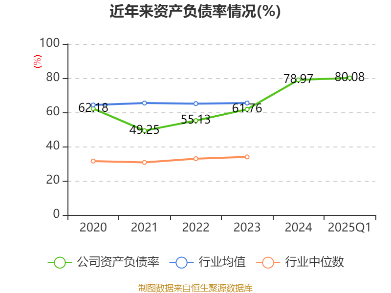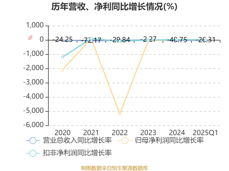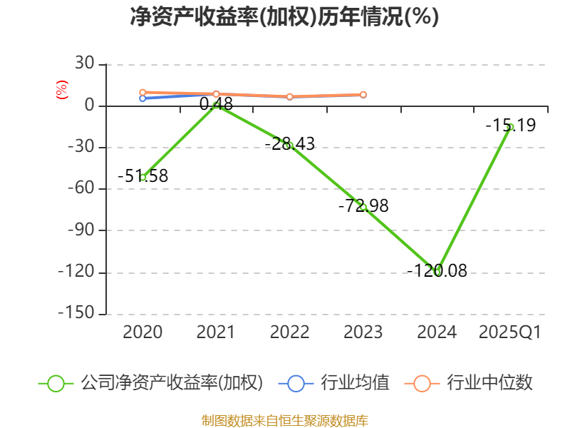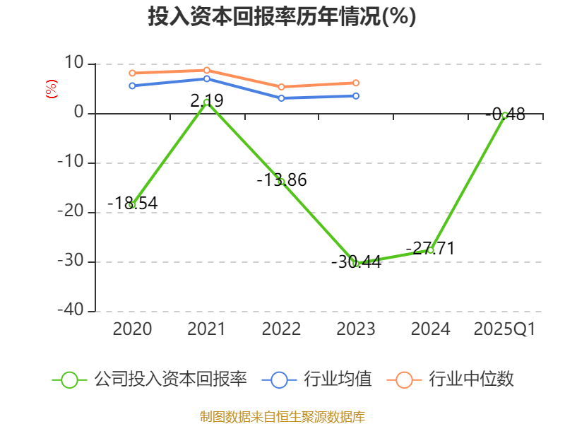 盈利能力方面, 2025年一季度公司加权平均净资产收益率为-15.19%,同比下降11.51个百分点。公司2025年第一季度投入资本回报率为-0.48%,较上年同期上升0.02个百分点。
