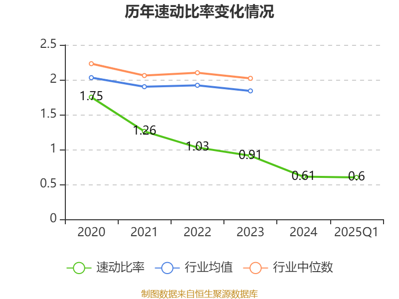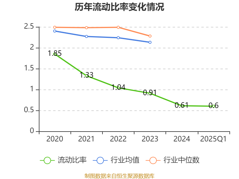 2025年第一季度,公司流动比率为0.6,速动比率为0.6。
