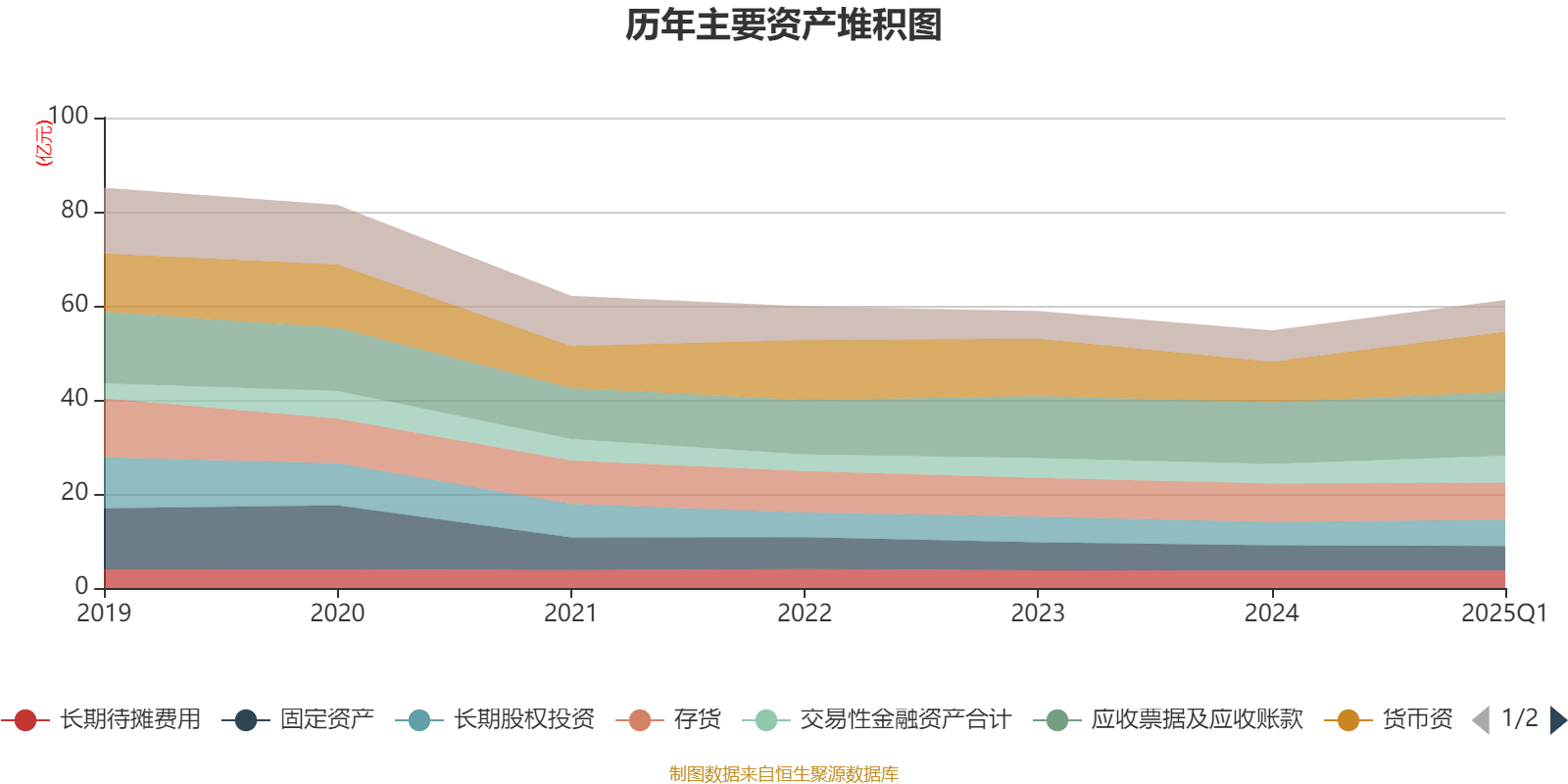 资产重大变化方面,截至2025年一季度末,公司货币资金较上年末增加48.74%,占公司总资产比重上升5.19个百分点;存货较上年末减少4.36%,占公司总资产比重下降2.16个百分点;应收票据及应收账款较上年末增加3.11%,占公司总资产比重下降1.87个百分点;交易性金融资产合计较上年末增加38.57%,占公司总资产比重上升1.82个百分点。