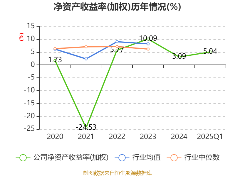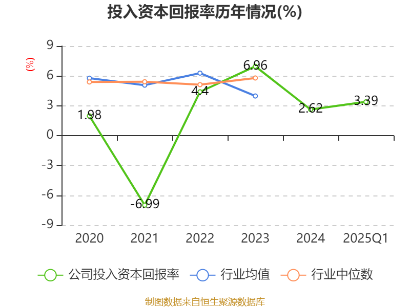 盈利能力方面, 2025年一季度公司加权平均净资产收益率为5.04%,同比上升6.15个百分点。公司2025年第一季度投入资本回报率为3.39%,较上年同期上升3.46个百分点。