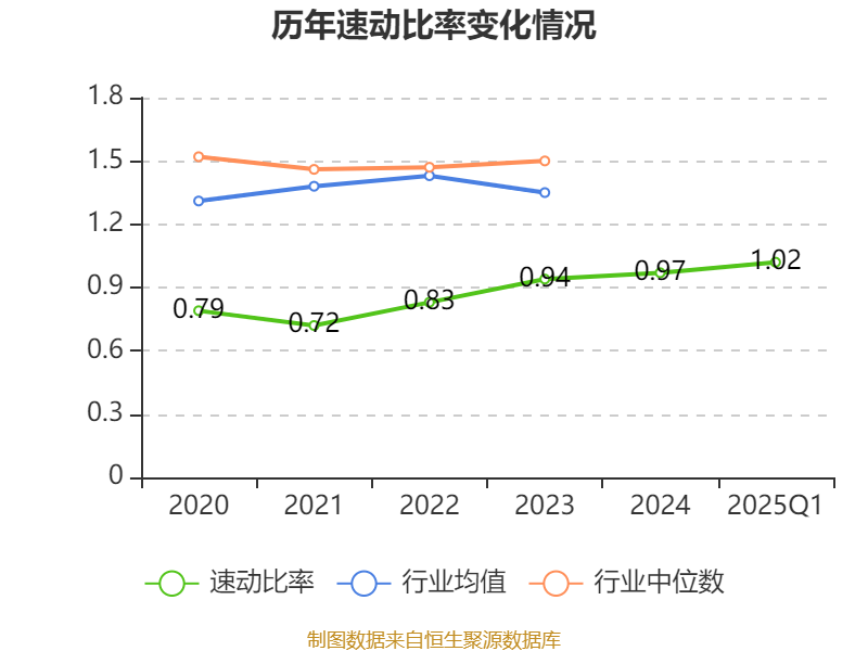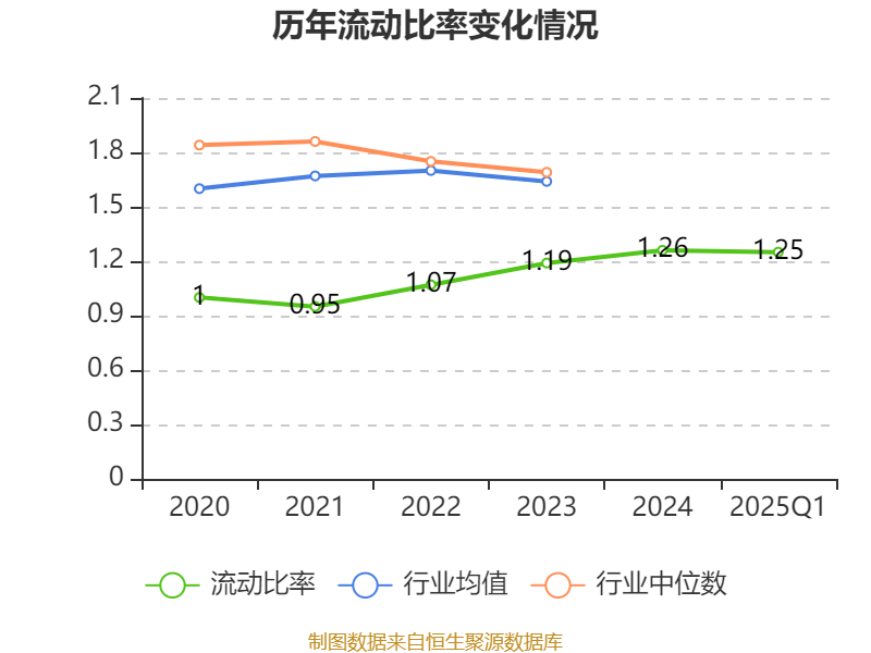 2025年第一季度,公司流动比率为1.25,速动比率为1.02。