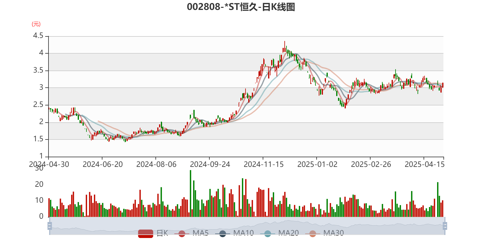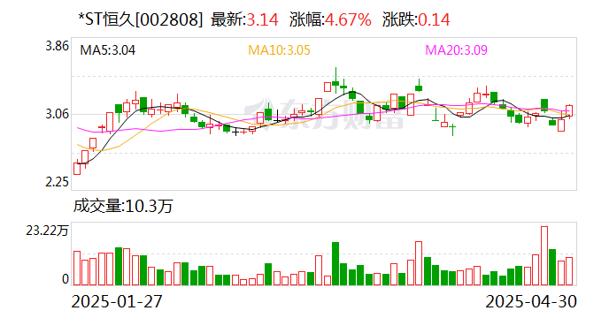 以4月29日收盘价计算,*ST恒久目前市盈率(TTM)约为-17.48倍,市净率(LF)约2.87倍,市销率(TTM)约4.81倍。