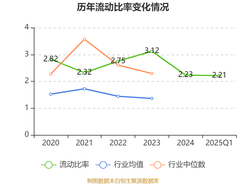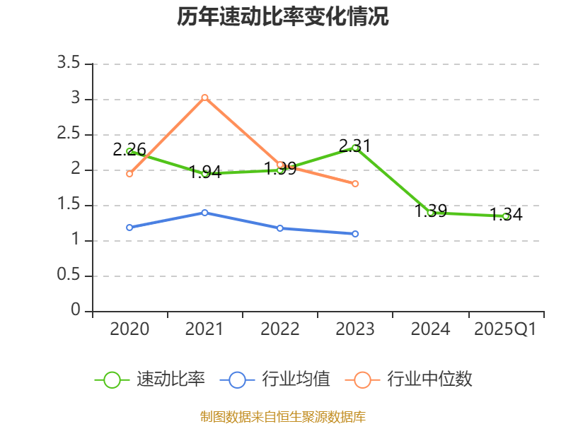 2025年第一季度,公司流动比率为2.21,速动比率为1.34。