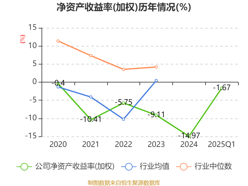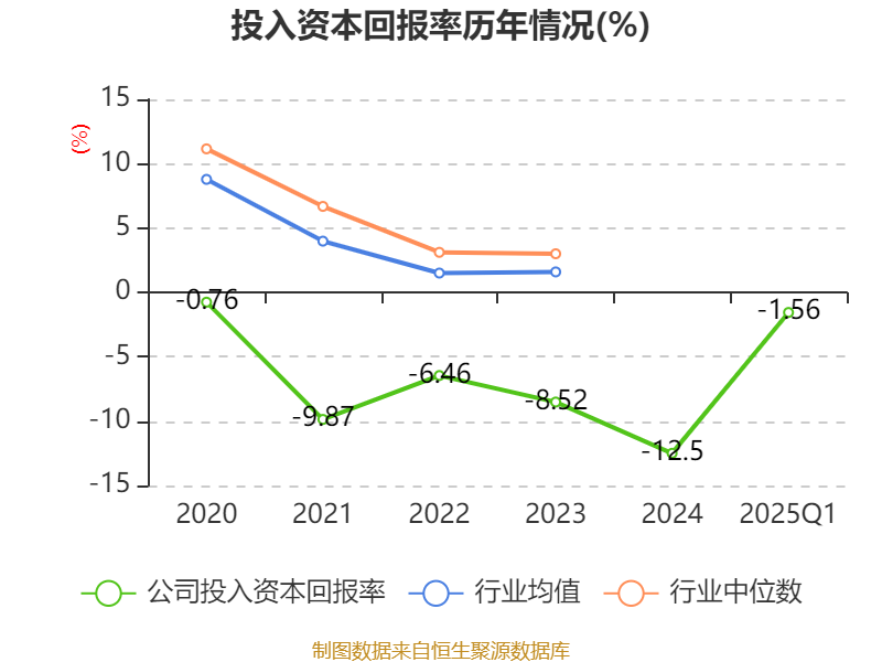 盈利能力方面, 2025年一季度公司加权平均净资产收益率为-1.67%,同比上升0.01个百分点。公司2025年第一季度投入资本回报率为-1.56%,较上年同期上升0.31个百分点。