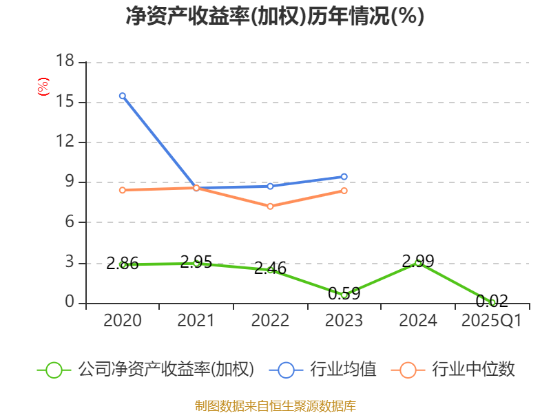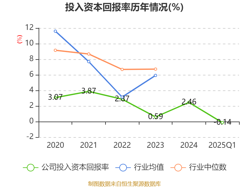 盈利能力方面, 2025年一季度公司加权平均净资产收益率为0.02%,同比下降0.5个百分点。公司2025年第一季度投入资本回报率为-0.14%,较上年同期下降0.55个百分点。