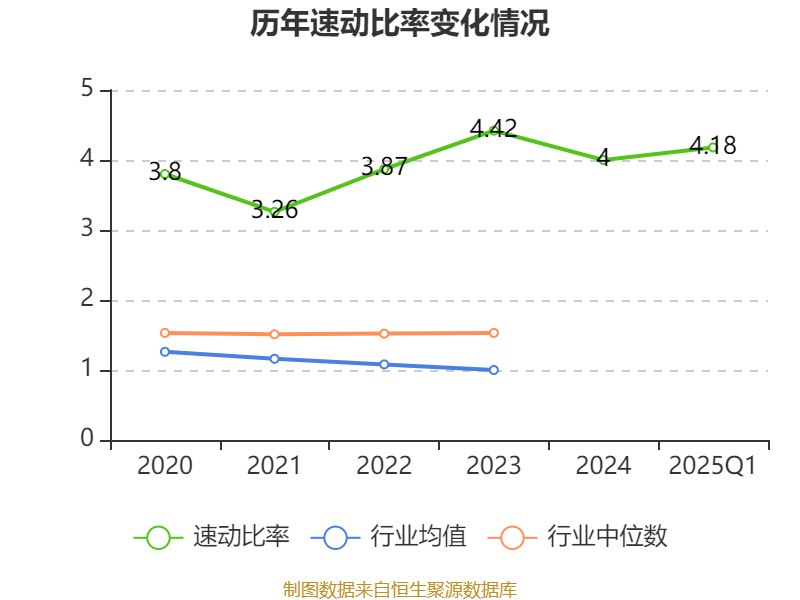 2025年第一季度,公司流动比率为4.52,速动比率为4.18。