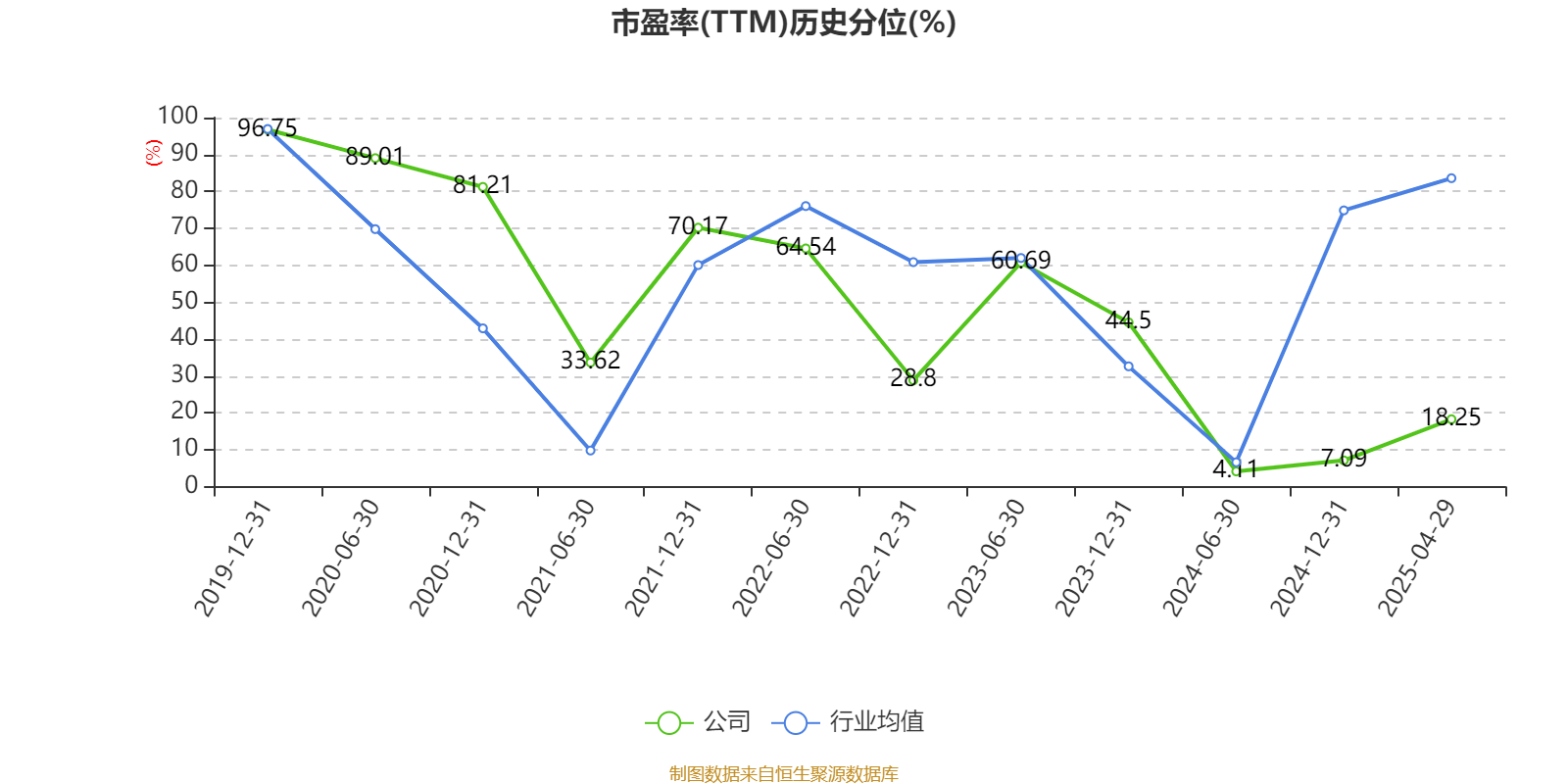 市盈率、市净率为负时,不显示当期分位数,会导致折线图中断。