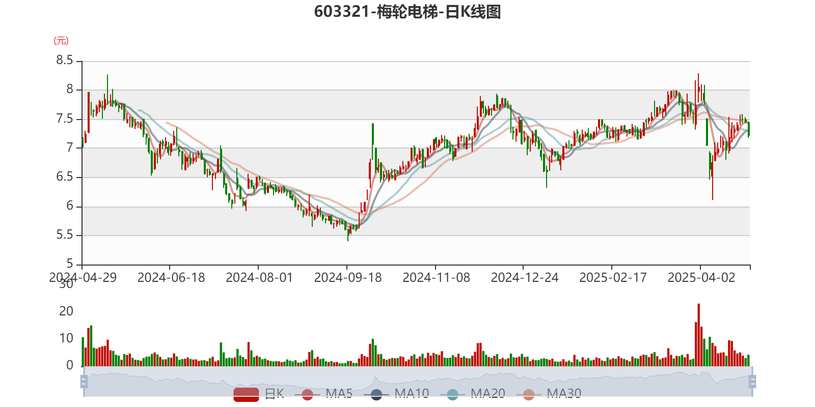以4月28日收盘价计算,梅轮电梯目前市盈率(TTM)约为33.88倍,市净率(LF)约1.79倍,市销率(TTM)约2.79倍。