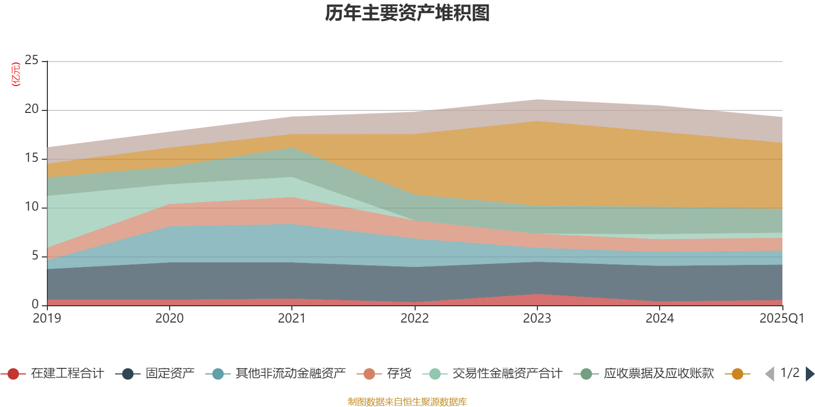 资产重大变化方面,截至2025年一季度末,公司货币资金较上年末减少11.8%,占公司总资产比重下降2.39个百分点;应收票据及应收账款较上年末减少13.28%,占公司总资产比重下降1.1个百分点;固定资产较上年末减少0.78%,占公司总资产比重上升0.95个百分点;在建工程合计较上年末增加42.61%,占公司总资产比重上升0.95个百分点。