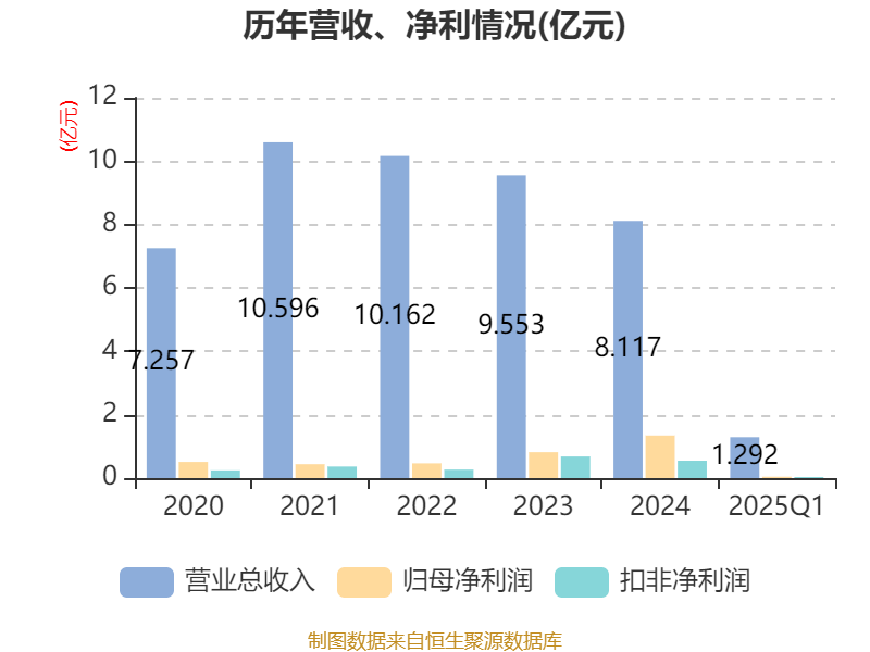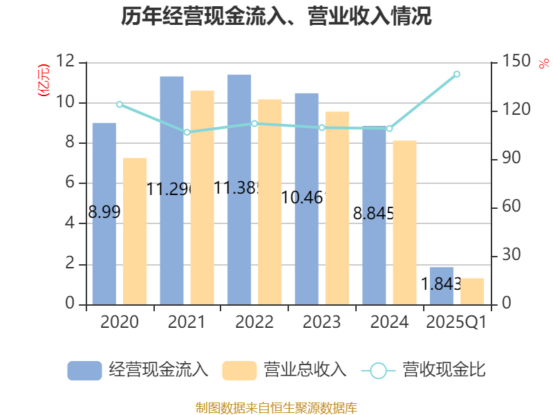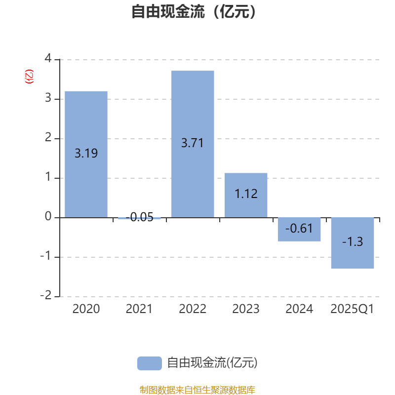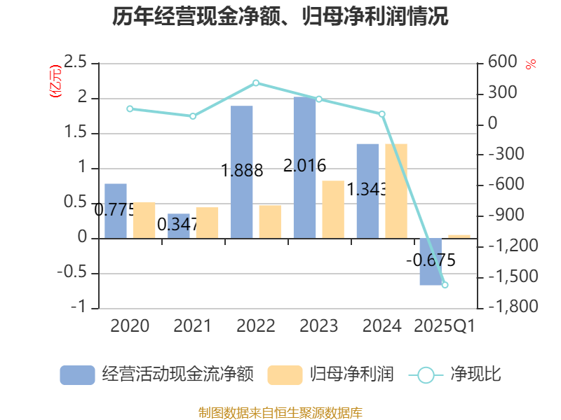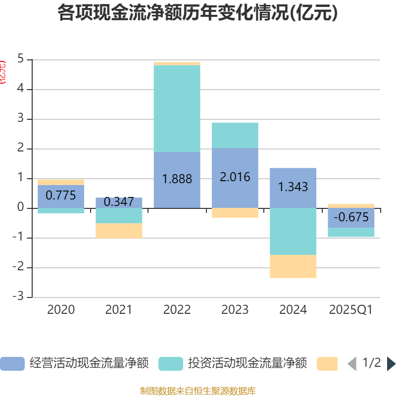 截至2025年一季度末,公司经营活动现金流净额为-6745.09万元,同比减少8632.81万元;筹资活动现金流净额1320万元,同比增加4260.95万元;投资活动现金流净额-2980.8万元,上年同期为-6246.79万元。
