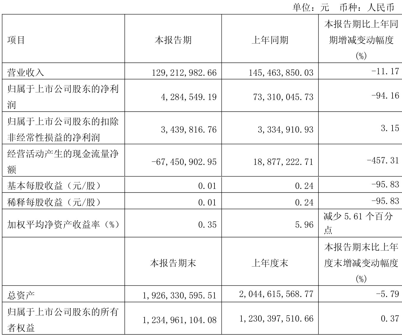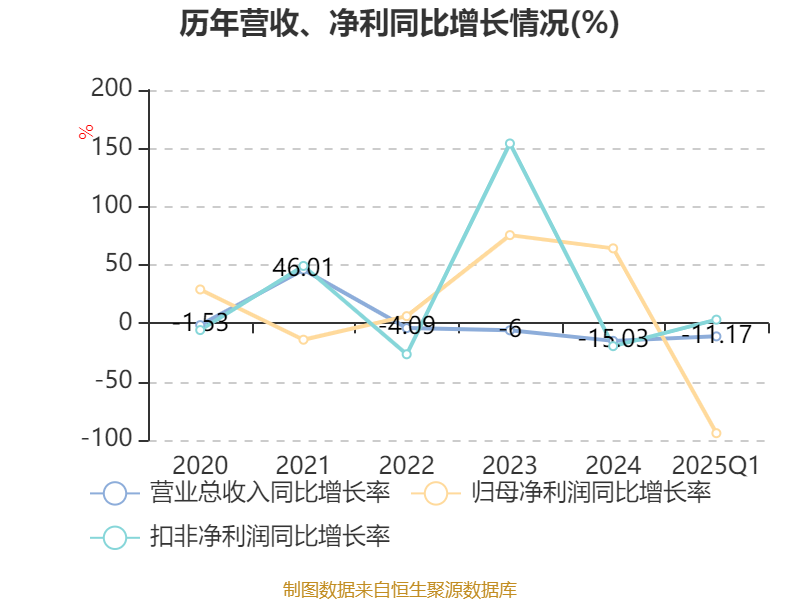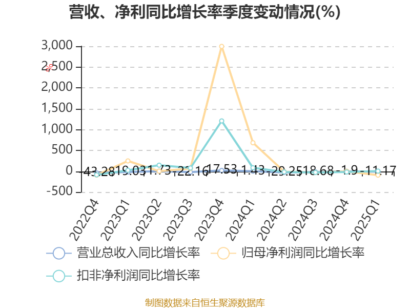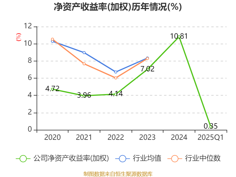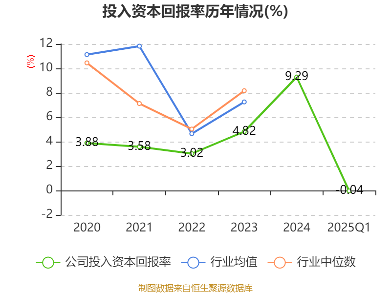 盈利能力方面, 2025年一季度公司加权平均净资产收益率为0.35%,同比下降5.61个百分点。公司2025年第一季度投入资本回报率为-0.04%,较上年同期下降5.44个百分点。