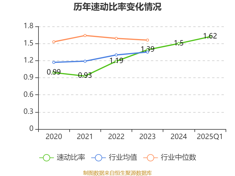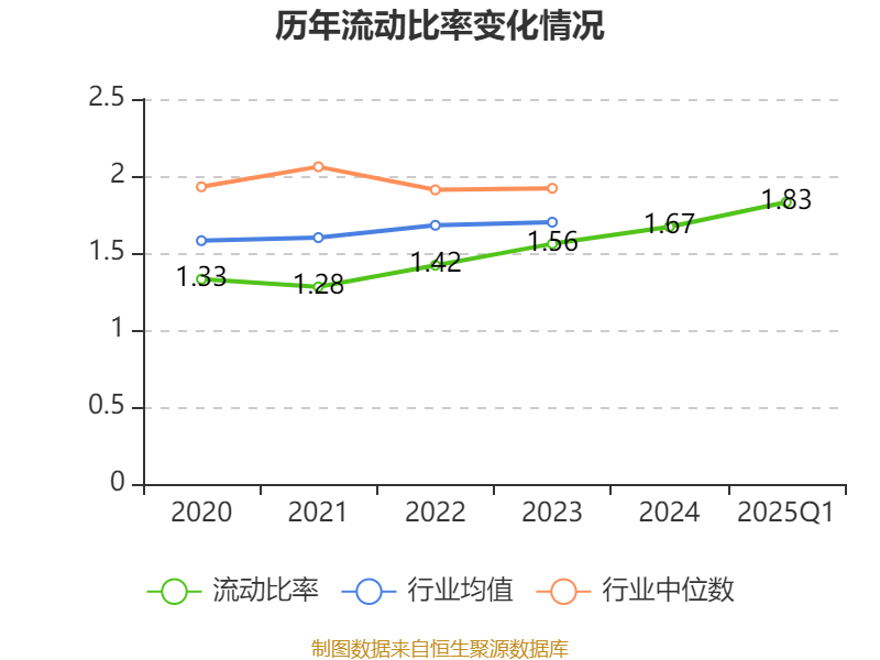 2025年第一季度,公司流动比率为1.83,速动比率为1.62。