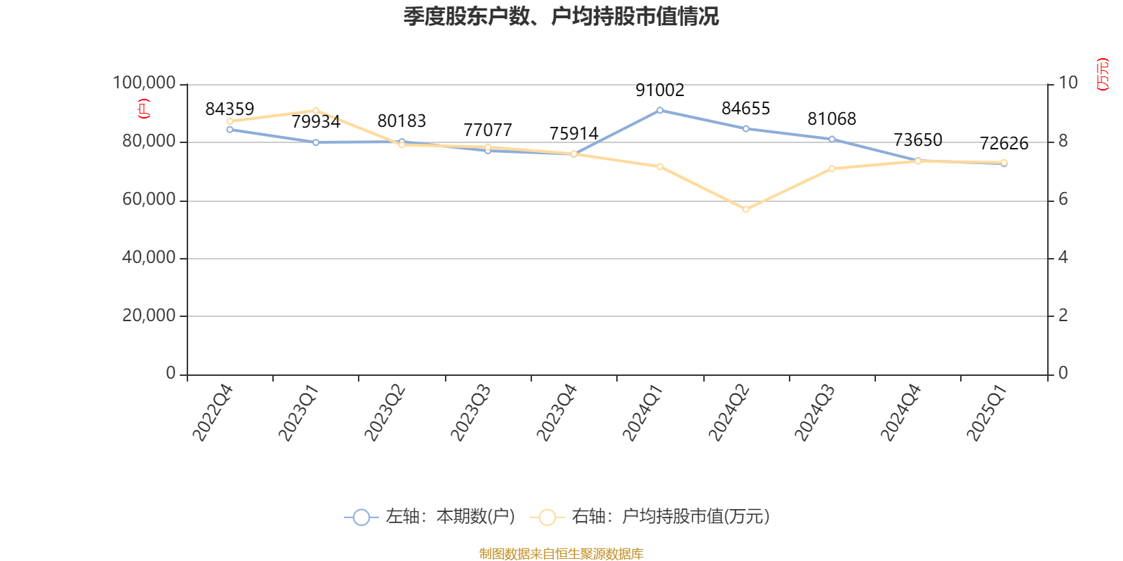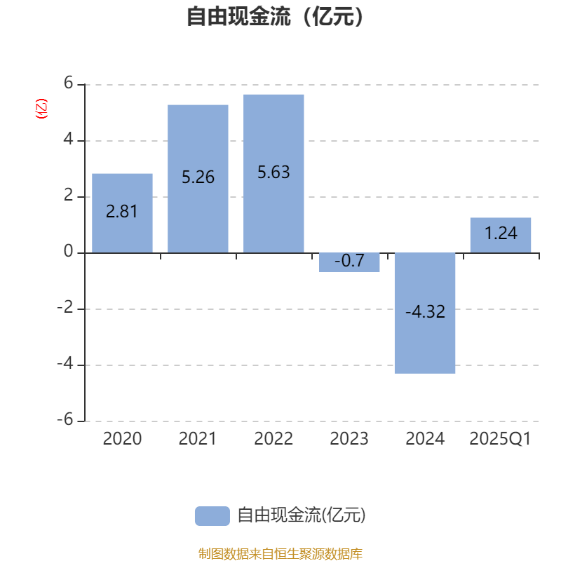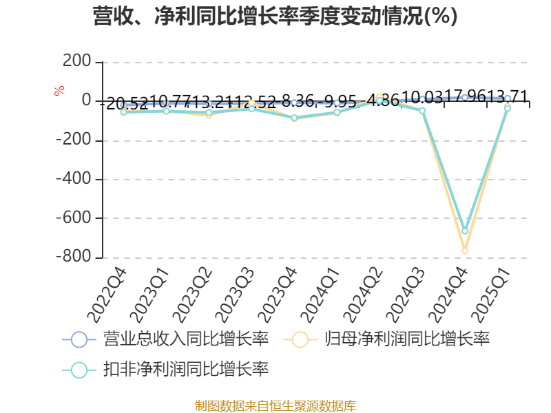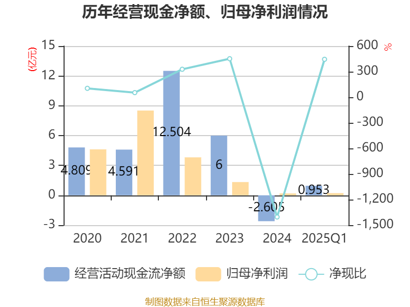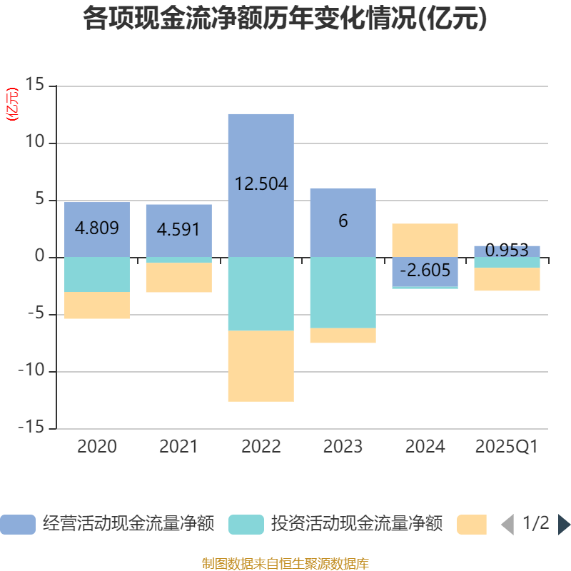 截至2025年一季度末,公司经营活动现金流净额为9533.73万元,同比增加2.06亿元;筹资活动现金流净额-2亿元,同比减少3.61亿元;投资活动现金流净额-9484.35万元,上年同期为2556.91万元。