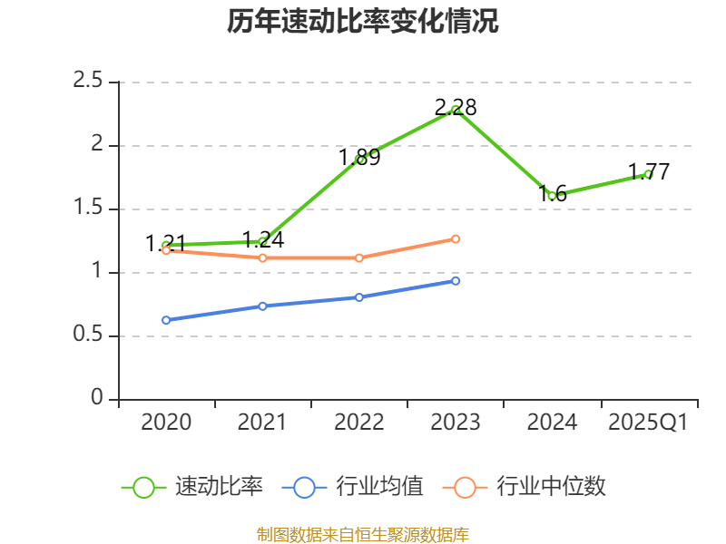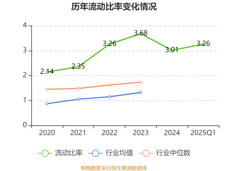 2025年第一季度,公司流动比率为3.26,速动比率为1.77。