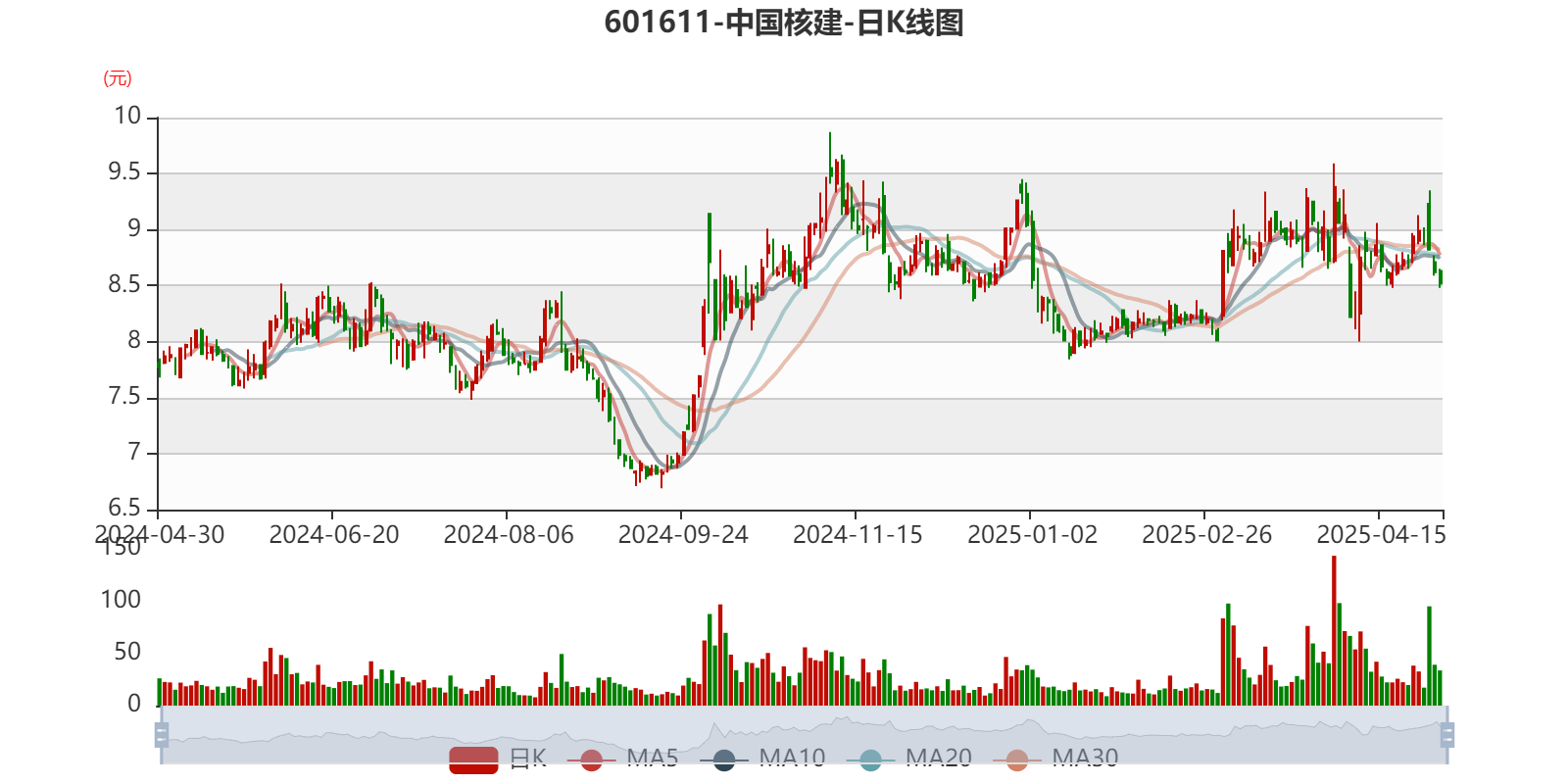 以4月29日收盘价计算,中国核建目前市盈率(TTM)约为12.62倍,市净率(LF)约0.83倍,市销率(TTM)约0.23倍。