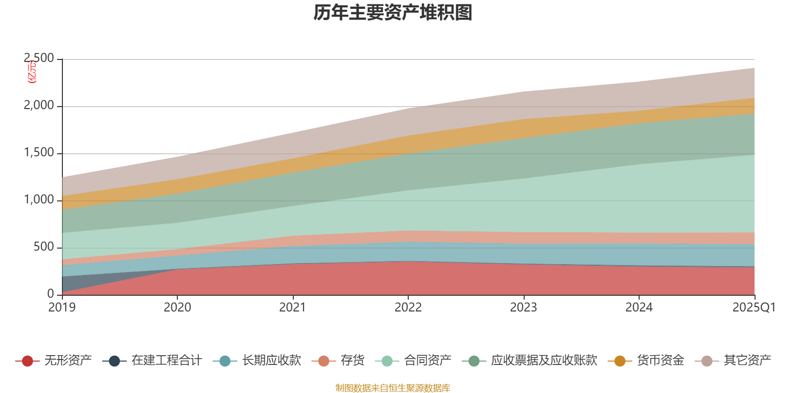 资产重大变化方面,截至2025年一季度末,公司合同资产较上年末增加13.61%,占公司总资产比重上升2.15个百分点;无形资产较上年末减少3.8%,占公司总资产比重下降1.28个百分点;货币资金较上年末增加26.21%,占公司总资产比重上升1.08个百分点;应收票据及应收账款较上年末增加0.64%,占公司总资产比重下降1.06个百分点。
